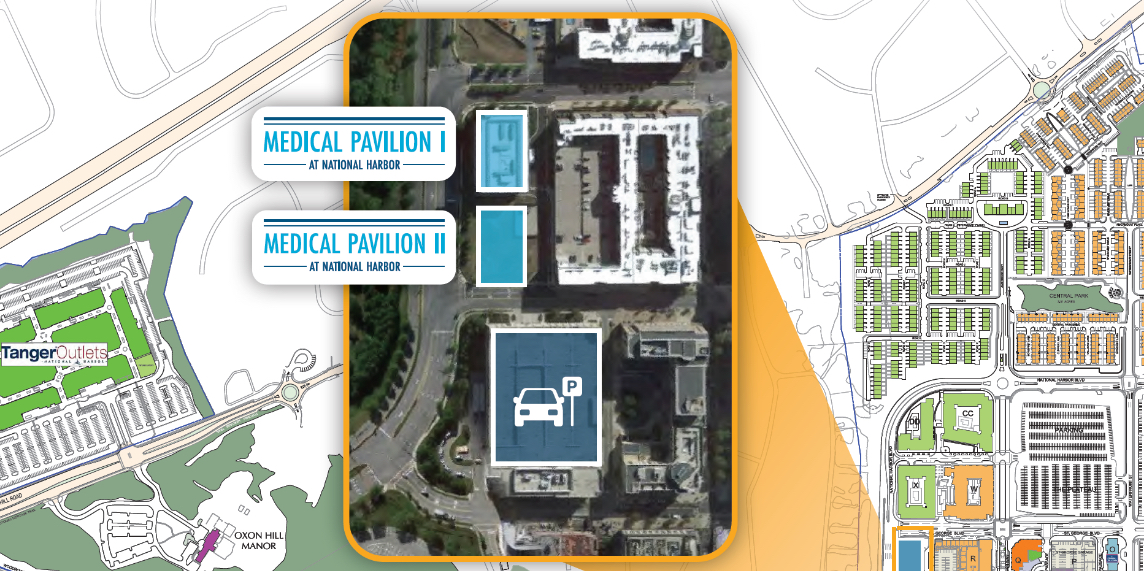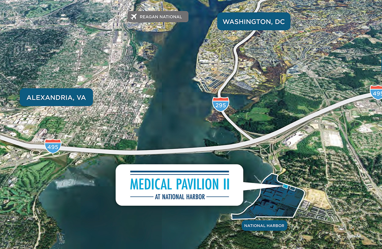 National Harbor, MD, Medical Pavilion II features modern amenities and 95,000 SF of space spread throughout five floors. Less than five miles from Alexandria, VA and Washington, DC, National Harbor’s premier outpatient medical campus is the ideal space for new and established practices.